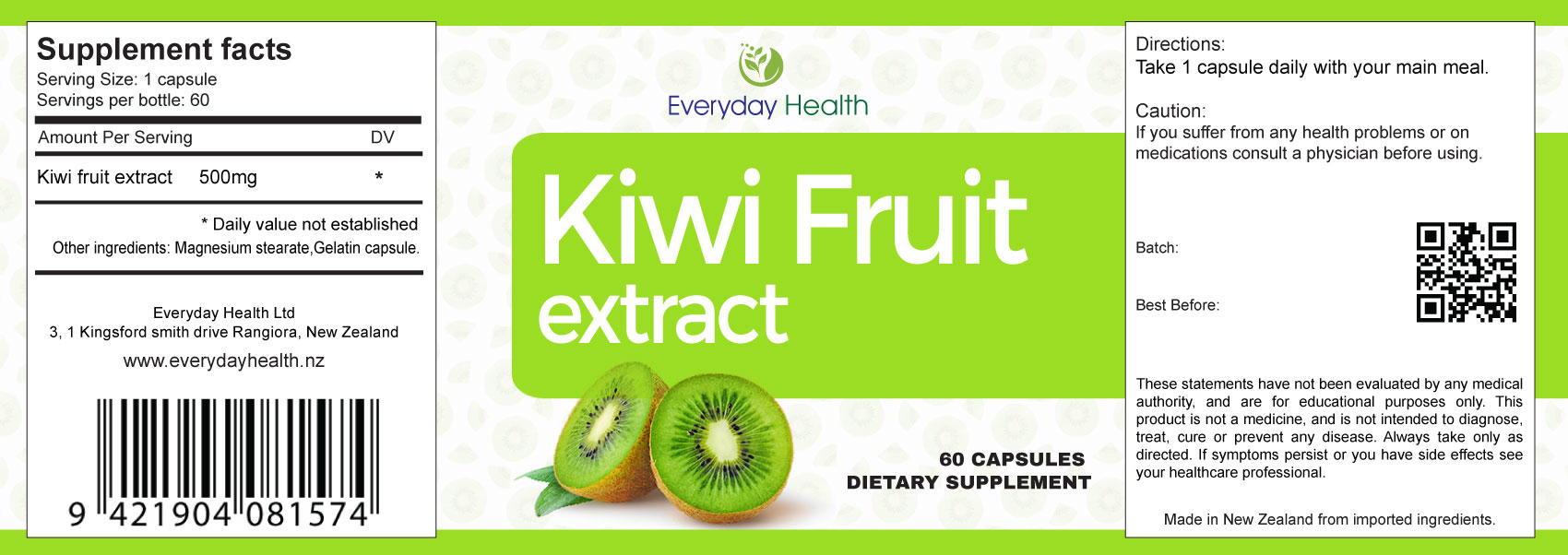 Each capsule contains 500mg of Kiwifruit 10:1 extract