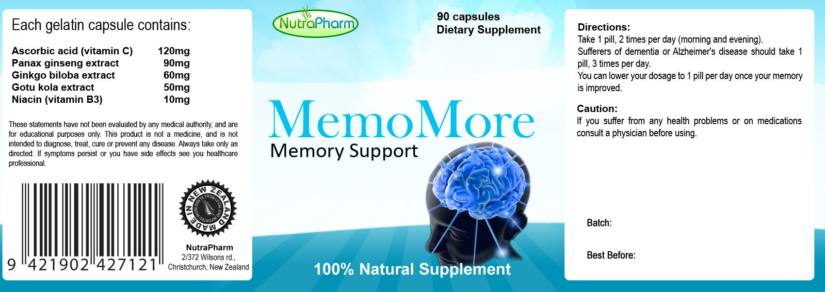 Memomore is a vasodilator that increases circulatory oxygenation to brain cells, which will help with Alzheimer's disease, dementia, senility, and memory loss (long term and short term).